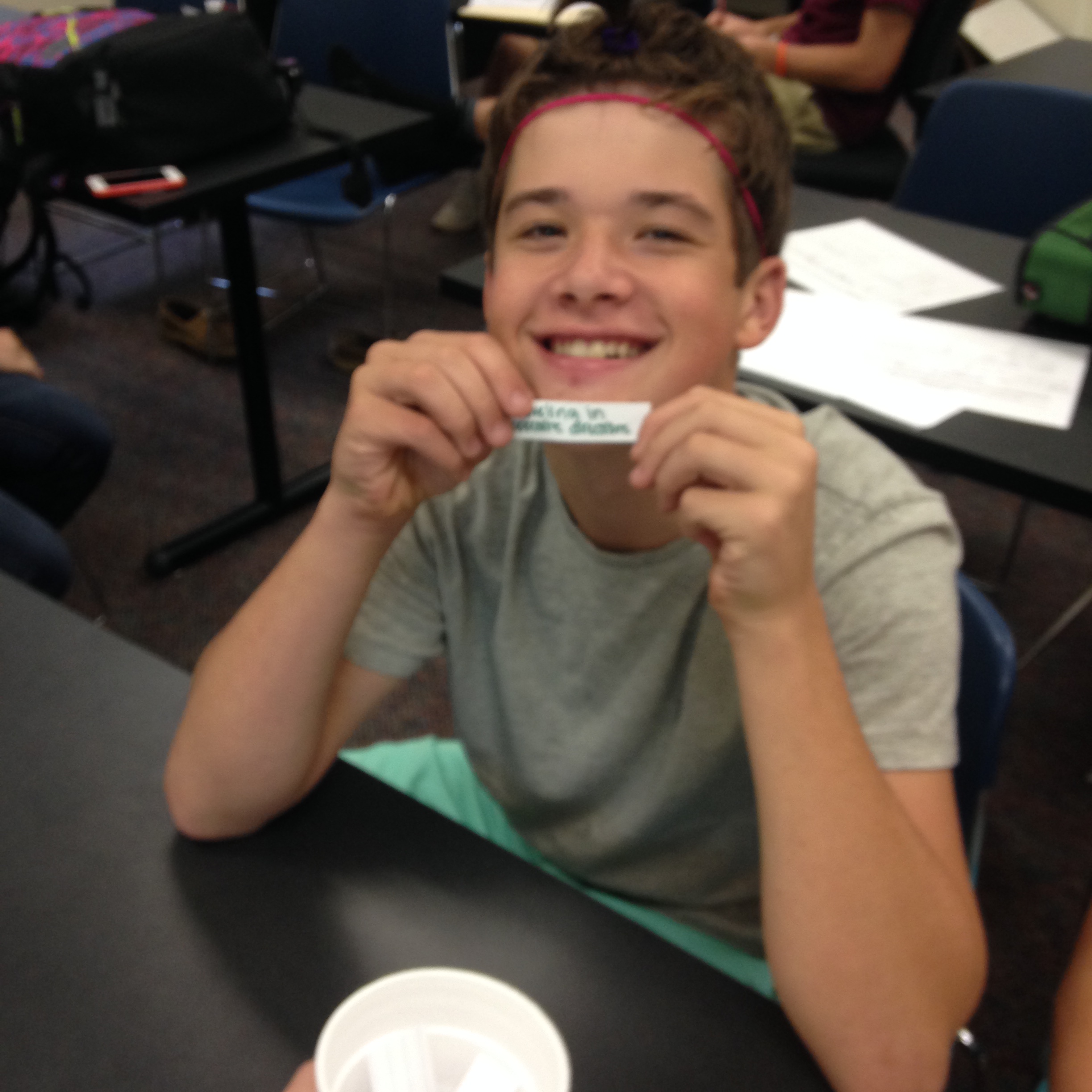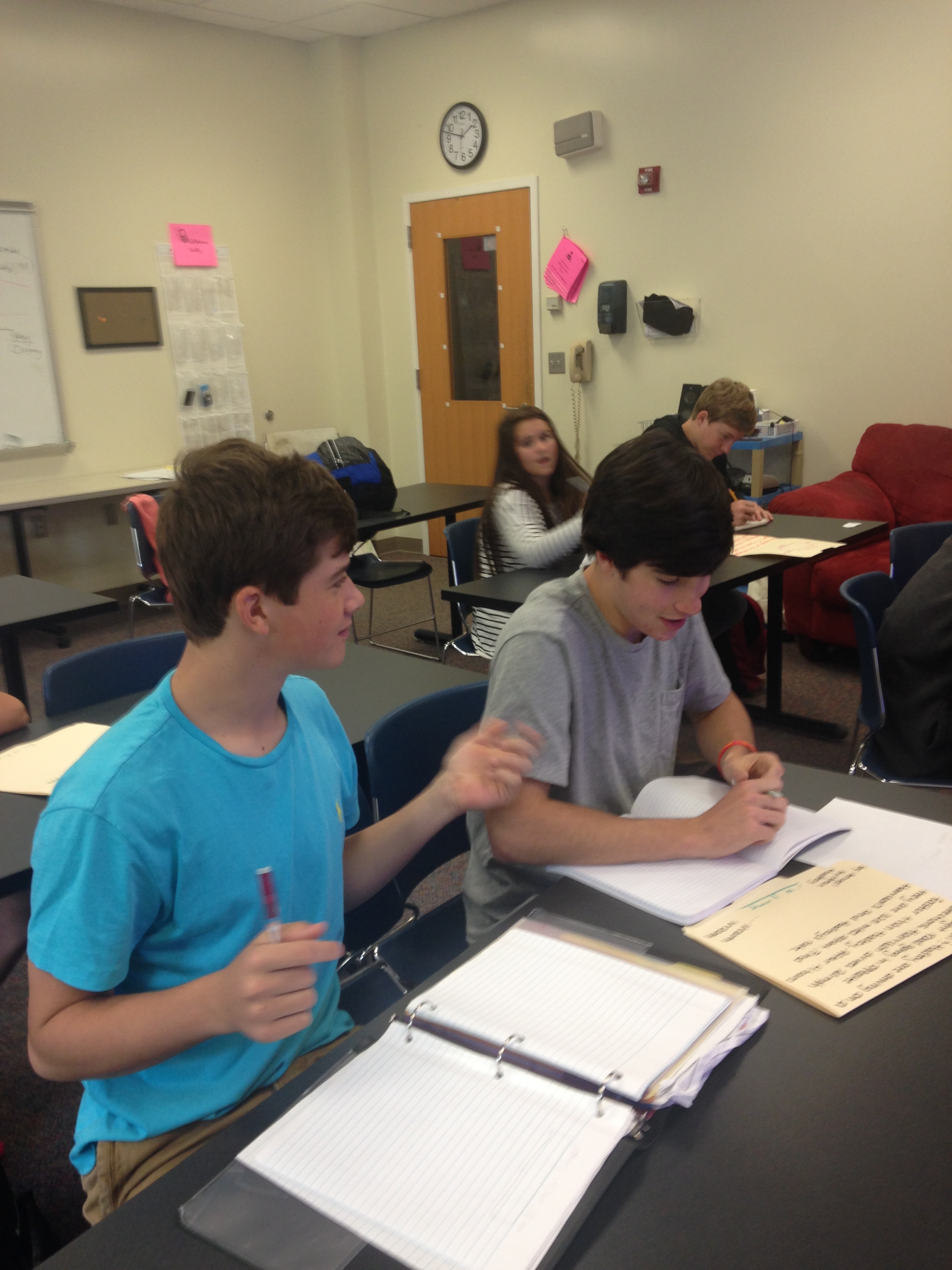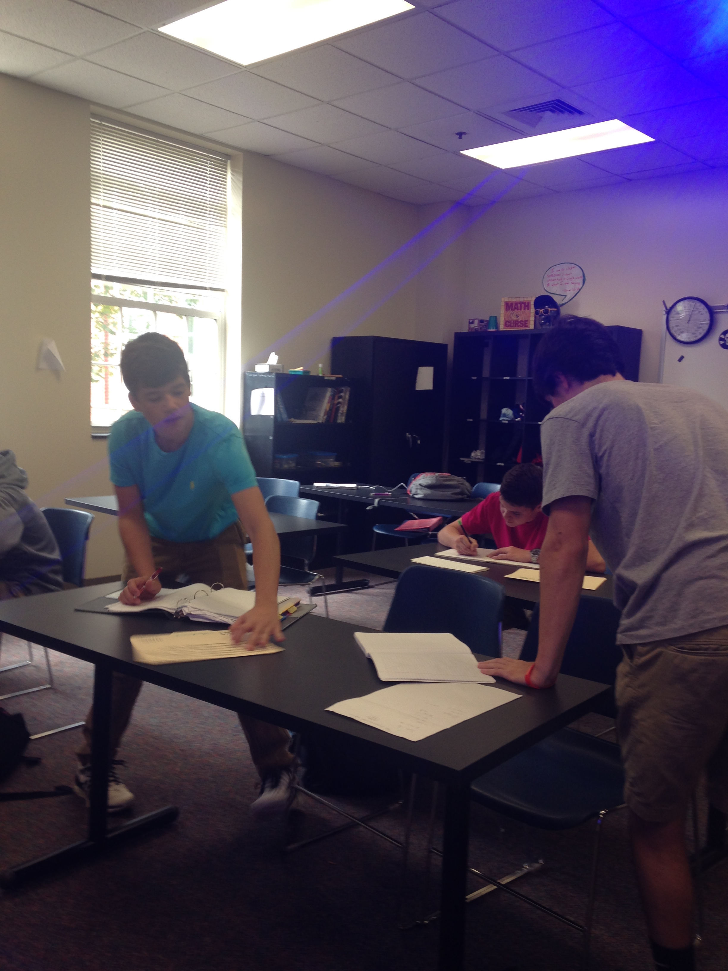 I next decided to use these folders in my algebra 1 class for teaching word problems. This particular class has A LOT of energy. It’s hard to get them to focus and take notes. I’ve been trying to figure out a way to have them practice word problems (perimeter, consecutive numbers, uniform motion). Students already filled in notes with notes with me and had examples of every type of word problem. Instead of giving students multiple problems to practice, I broke the class into partners and gave each group a word problem. It was each group’s job to complete the word problem and call me over when they finished. Once a group completed the problem correctly they had to copy their problem onto the manilla folder. On the front of the folder, they had to write the word problem. On the inside of the folder, they had to draw a chart (if necessary) and show their algebraic work. They also had to write their answer to the question out in complete sentences. Students finished at different rates so this activity gave me plenty of time to walk around and help students and check for understanding.